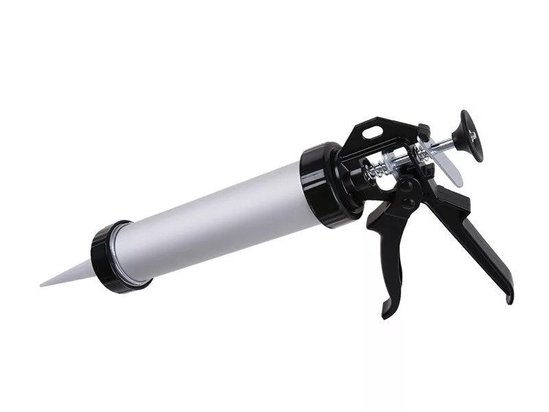 Extrudáló pisztoly tubusokhoz és patronokhoz 310 ml, zárt cső alakú alumínium ház, kiváló minőségű megerősített acél mozgó és toló mechanizmus, tartós fém fogantyú, tartalék hegyek - applikátorok 38014, felhasználás: tömítőanyagok extrudálásához 310 ml-es PVC tasakban és tömítőanyagok és ragasztók extrudálásához 310-ben ml-es patronok.