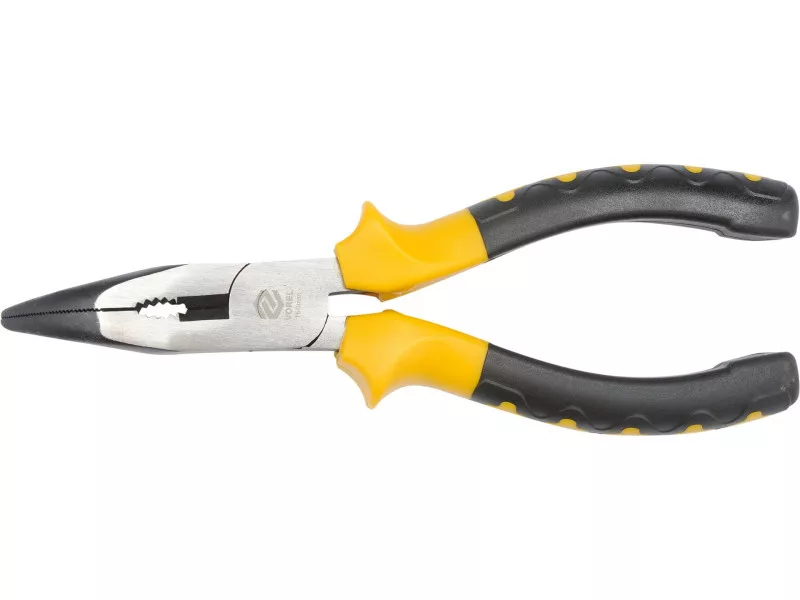 Extended pliers bent 160 mm by Vorel 40050. Titched jaw surface with profiled cutting blades. Handles covered with comfortable plastic two component covers. Stable joint joint, transmitting heavy loads.