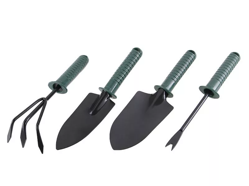 Kerti szerszámkészlet - hobbi, összeállítás: keskeny és széles ásó, kapa és vetőgép, hossza 24 cm, műanyag nyéllel, kisebb kerti munkákhoz, szobanövényekhez, átültetéshez...