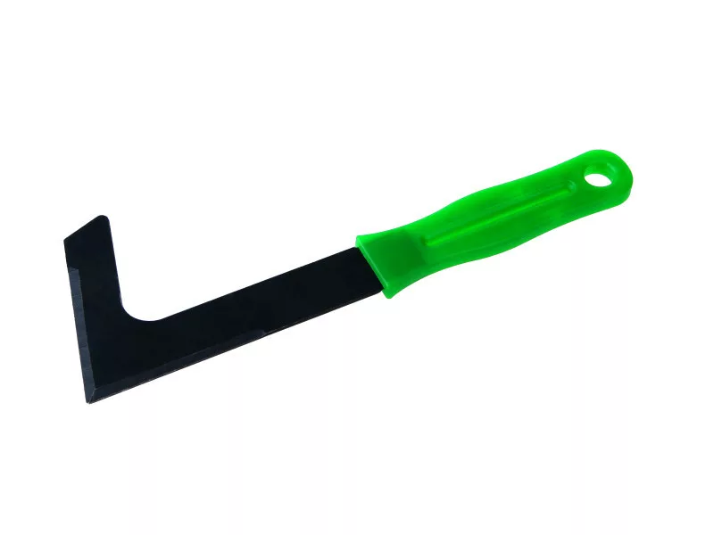 Das L Unkrautmesser dient zum Entfernen von Unkraut aus den Fugen zwischen Fliesen. Das Unkrautmesser besteht aus Stahl, mit einem Kunststoffgriff und einer Aufhängeöse.
