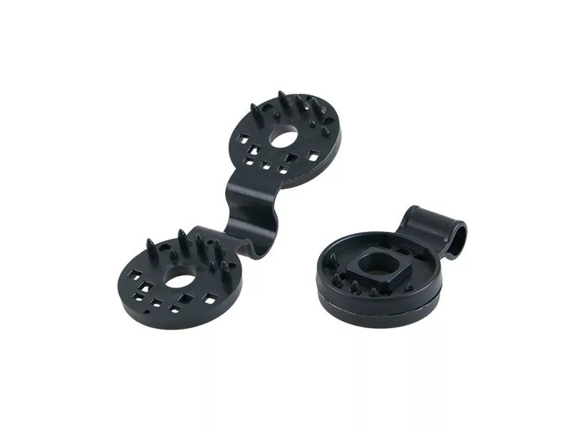 Kunststoffklammern, die zur Befestigung des Schattierungsgewebes an einem Zaun dienen.