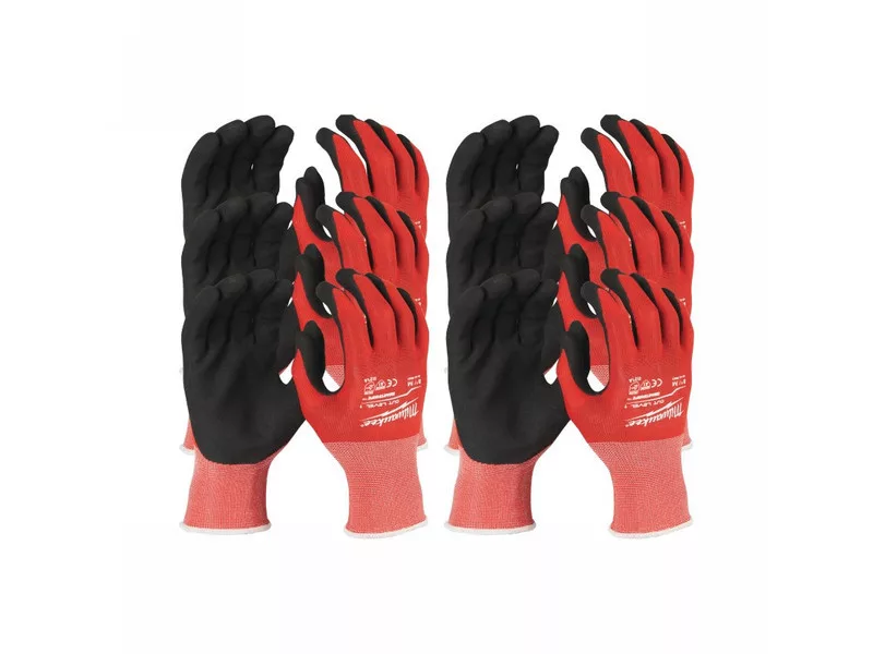 MILWAUKEE Arbeitsschutzhandschuhe, schnittfest, mit Nitril getaucht, 1/A – M/8 (12 Paar/Karton)