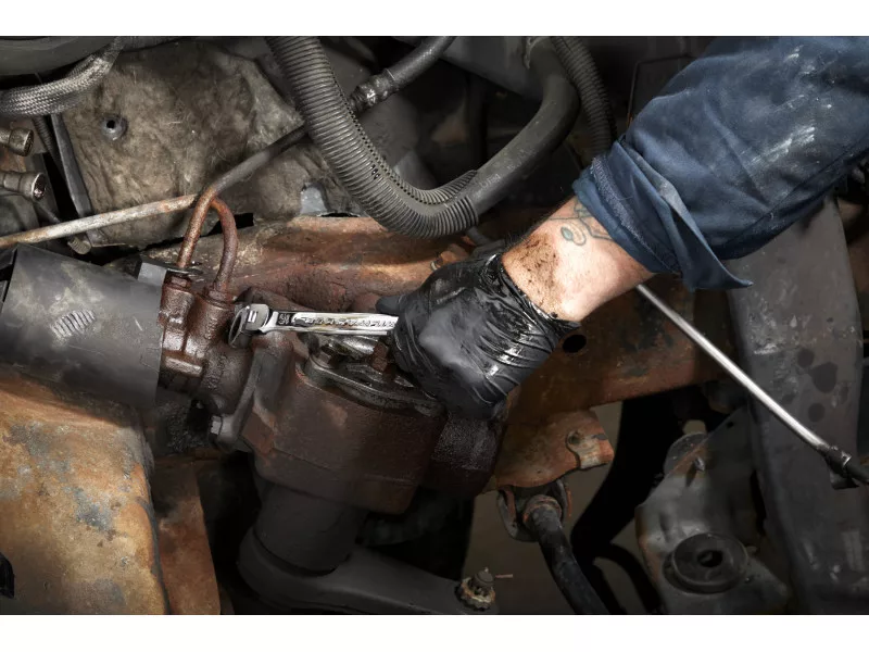 • Gabelschlüsselkopf mit MAX BITE™-Design, passt perfekt auf den Schraubenkopf und reduziert so die Möglichkeit von Schraubenschäden und Ausgleiten des Schlüssels