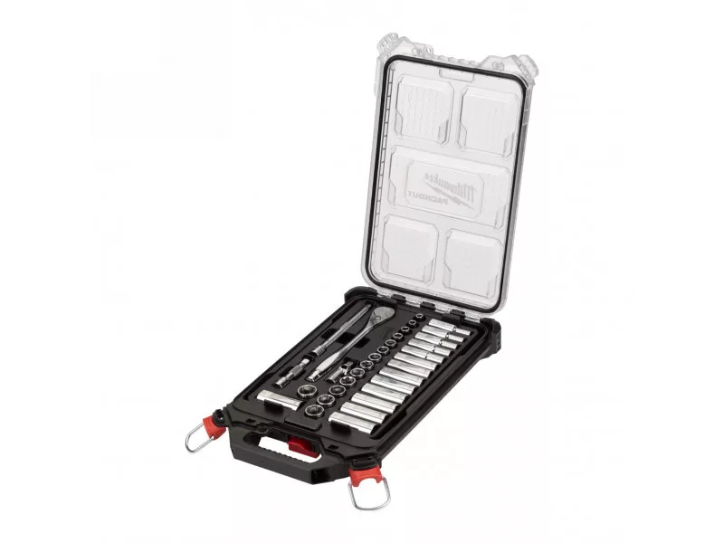 MILWAUKEE Steckschlüsselsatz 32-teilig 3/8" 6-19 mm im PACKOUT schmalen Organizer