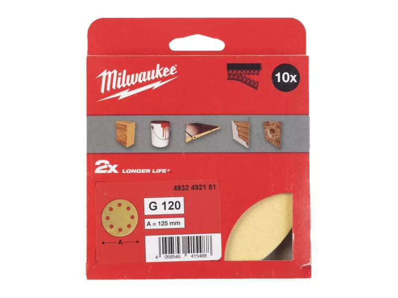 MILWAUKEE Klett-Schleifpad HP 125 mm / P120 8 Löcher (10 Stück)