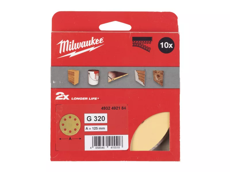 MILWAUKEE Klett-Schleifpad HP 125 mm / P320 8 Löcher (10 Stück)
