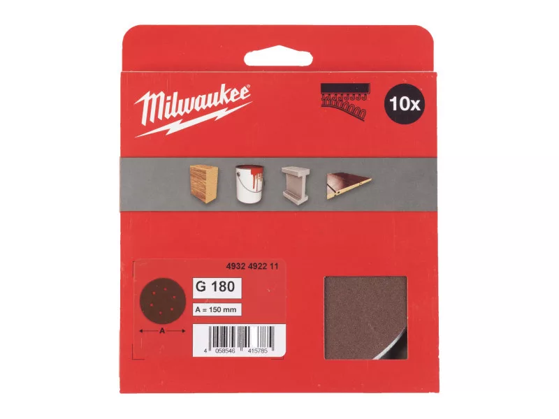 MILWAUKEE Klett-Schleifpad STD 150 mm / P180 6 Löcher (10 Stück)