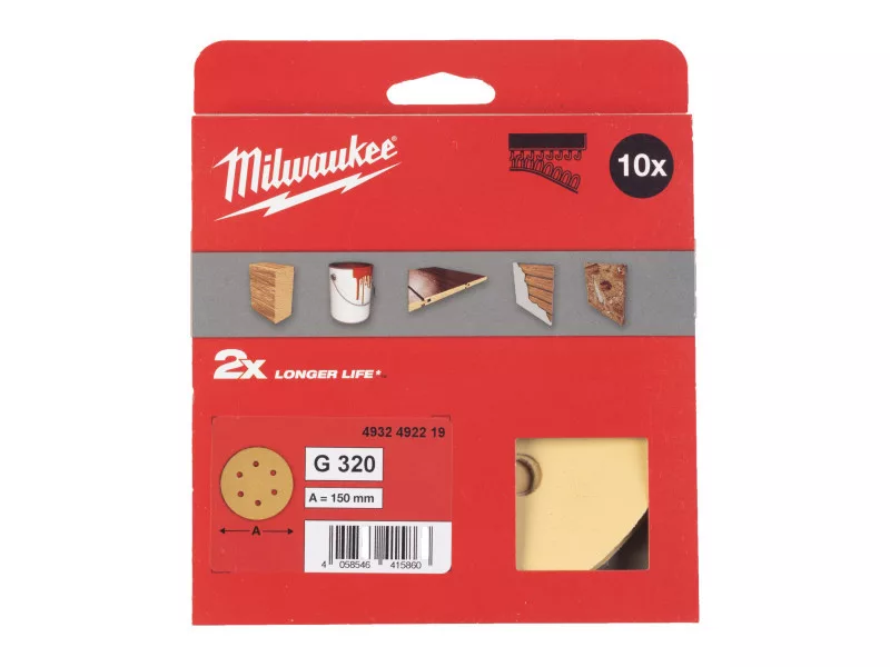 MILWAUKEE Klett-Schleifpad HP 150 mm / P320 8 Löcher (10 Stück)