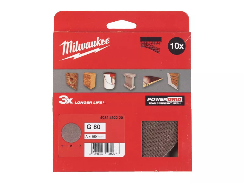 MILWAUKEE Klett-Schleifnetz PG 150 mm / P80 (10 Stück)