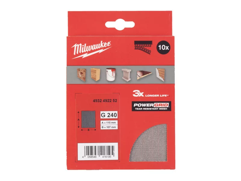 MILWAUKEE Klett-Schleifnetz PG 115 x 107 mm / P240 (10 Stück)