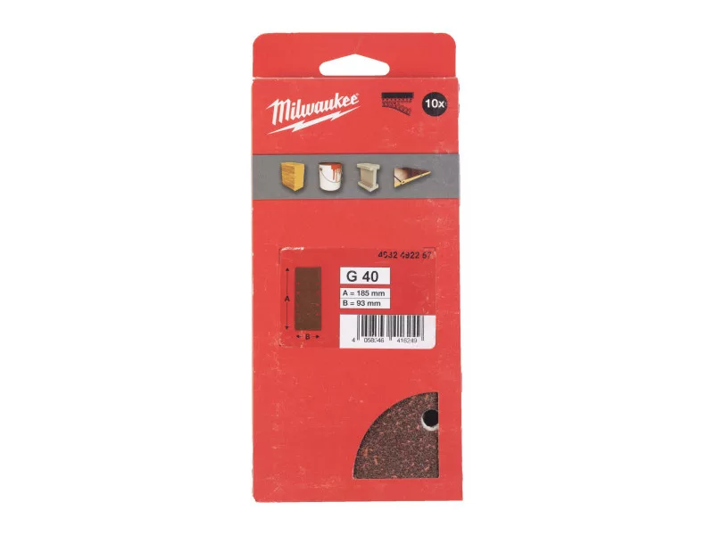 MILWAUKEE Klett-Schleifpad STD 93 x 185 mm / P40 8 Löcher (10 Stück)