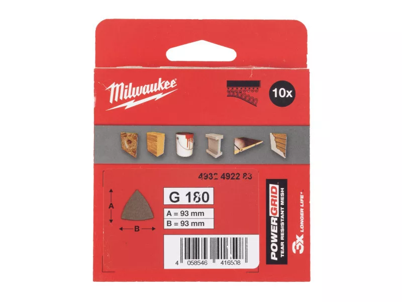 MILWAUKEE Klett-Delta-Schleifgewebe PG 93 x 93 mm / P80 (10 Stück)