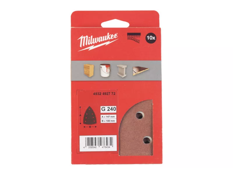 MILWAUKEE Klett-Delta-Schleifpad STD 100 x 147 mm / P240 7 Löcher (10 Stück)