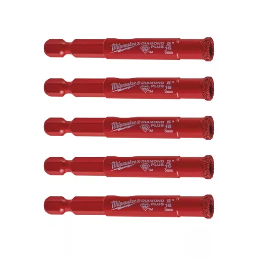 Das Set enthält 5 Diamantbohrer mit einem Durchmesser von 8 mm.
