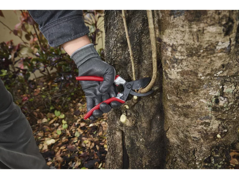 Die innovative Klingenaufbau widersteht auch großen Belastungen, sodass auch dicke Äste einen glatten Schnitt gewährleisten.