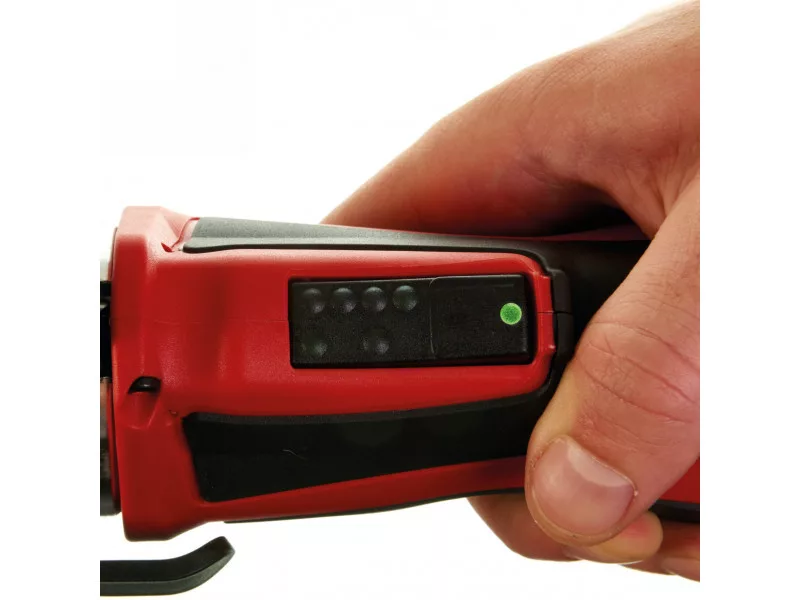 • Akkumulator - Werkzeugkommunikation: Die Presse verhindert den Start des Geräts, wenn der Akkumulator schwach geladen ist, um unzureichendes oder unvollständiges Pressen zu verhindern. Die Vorpresskontrolle des Akkumulatorladestands gewährleistet eine ausreichende Ladung für exzellentes Pressen