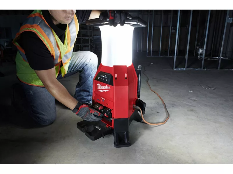 Es kann mit einem M18™ REDLITHIUM™ Akku oder einem 2,5 m Netzwerkkabel betrieben werden
