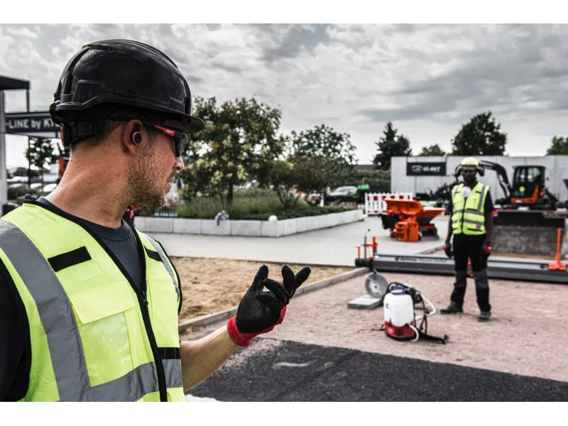 Passiver Gehörschutz, der für den Einsatz während des Stehens konzipiert wurde, wird durch Silikon- und Schaumstoff-Ohrstöpsel sichergestellt.