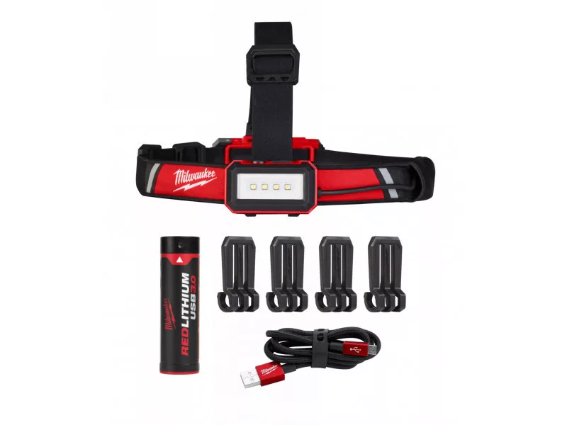 MILWAUKEE Wiederaufladbare LED-Stirnlampe L4HLRP-301 (1 x 3,0 Ah Akku + USB-Ladekabel)