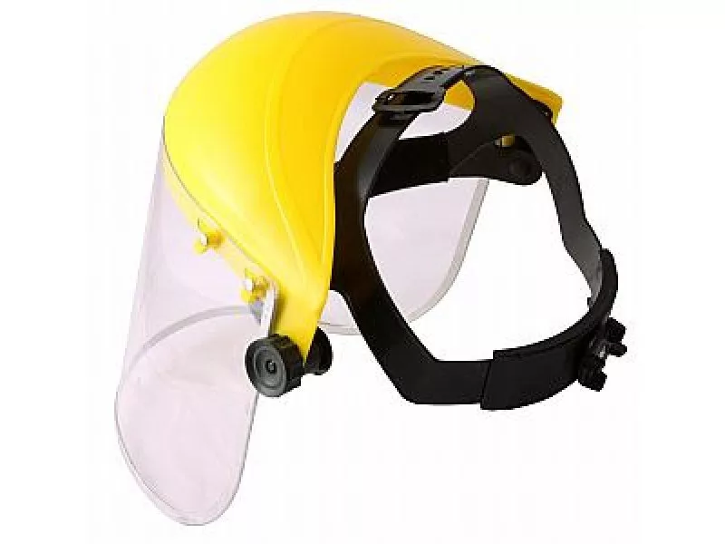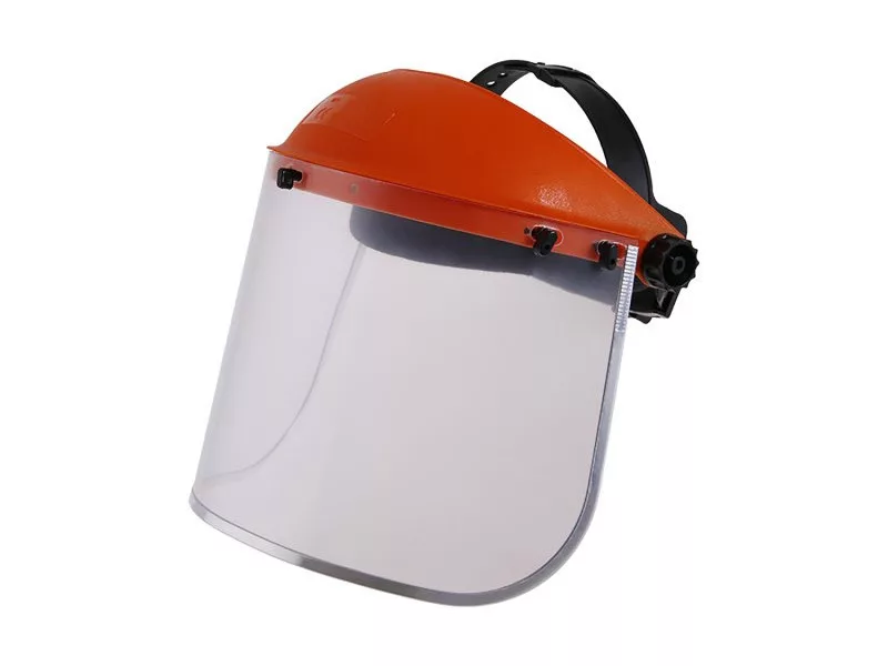Átlátszó védőpajzs polikarbonát napellenzővel, könnyen állítható méret a forgó keréknek köszönhetően, izzasztószalag elöl, CE EN 166.