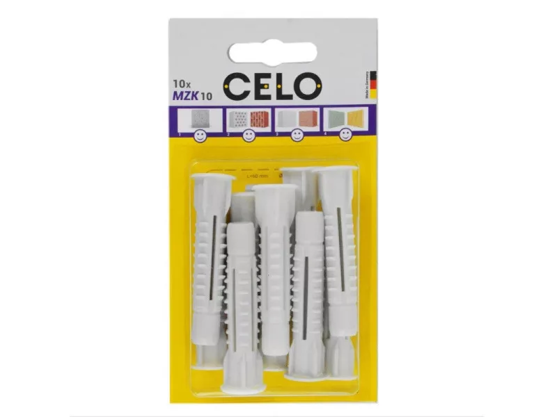 Der CELO MZK Universal-Kragendübel hat seine Exzellenz millionenfach bewiesen und ist fast in allen Baumaterialien verwendbar. Die 4-Wege-Expansion des Dübels in Vollmaterialien und der Knoteneffekt in Hohlbaustoffen und Gipskarton sorgen immer für eine angemessene Befestigung mit hoher Belastbarkeit. Der Kragen verhindert das Rutschen des Dübels in das Bohrloch. Kompatibel mit verschiedenen Arten und Größen von Schrauben. Enthält hochwertiges Polyethylen, das die dauerhafte Flexibilität des MZ Universal-Dübels garantiert.