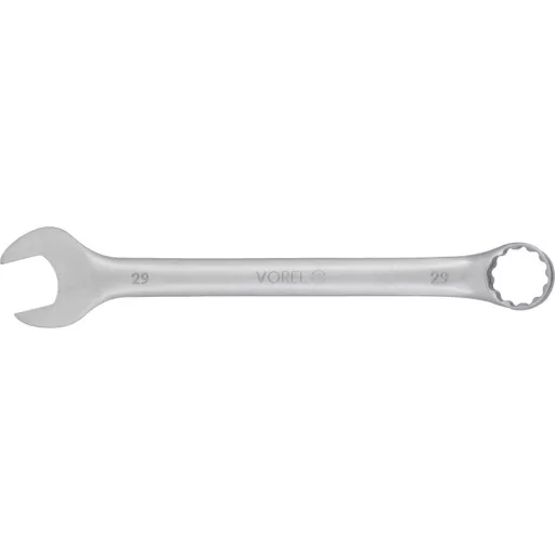 29 mm flat key from Vorel 51694. Made of CRV chrome-vanadium steel. Matrical forged key, perfectly tuned. The satin finish is minimized by the slip of the pollution key. A two -angle eyelet tip, additionally bent, which makes it easier to maneuver with the key.
