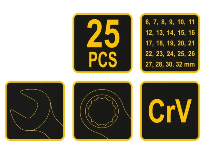 Keys: 6, 7, 8, 9, 10, 11, 12, 13, 14, 15, 16, 17, 18, 19, 20, 21, 22, 23, 24, 25, 26, 27, 28, 30, 32 mm
