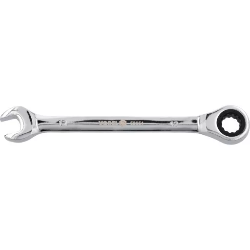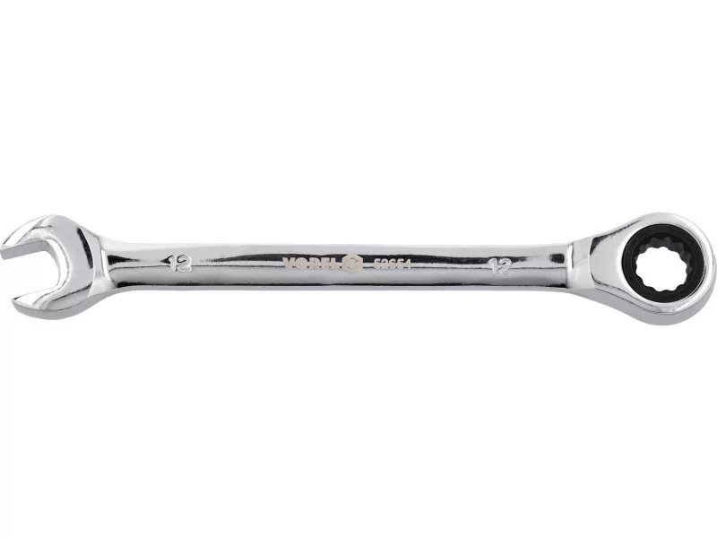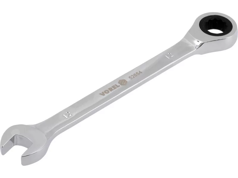 Flat-pocket key with a 12mm ratio of Vorel 52654. Made of CRV chrome-vanadium steel. The ratchet has 72 teeth. The surface finished with chrome.