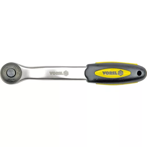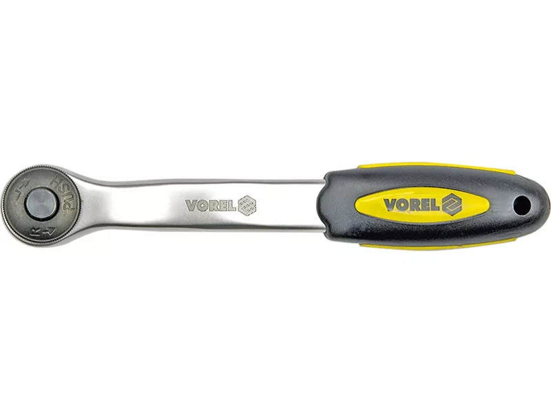 Brzechotka 1/4 "by Vorel 53571. Made of CRV chrome-vanadium steel. The ratchet has 72 teeth. The bent handle makes it easier to work with recessed screws.