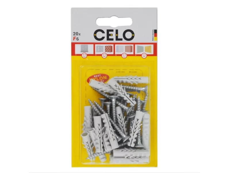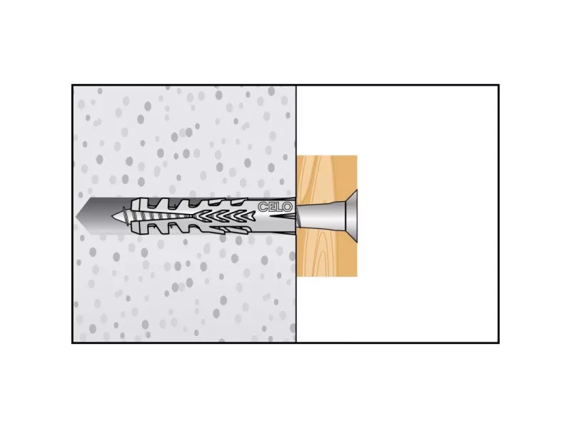 Dank seiner hohen Expansionsfähigkeit bietet der Allzweckdübel CELO F eine hohe Auszugswerte. Es ist in einer breiten Palette von Durchmessern von 4-20 mm erhältlich. Der Allzweckdübel F ist eine ideale Wahl für Vollbaustoffe, bietet aber auch gute Lastwerte in Hohlziegeln und Porenbetonstrukturen. Dank seiner guten Schraubenführung bewegt sich die Schraube beim Antrieb nicht.