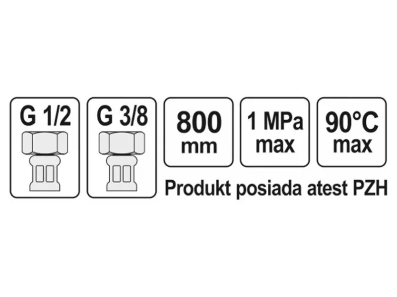Flexible stainless steel braided connection hose. It is designed for hot and cold water. It is approved by the PZH for contact with drinking water.