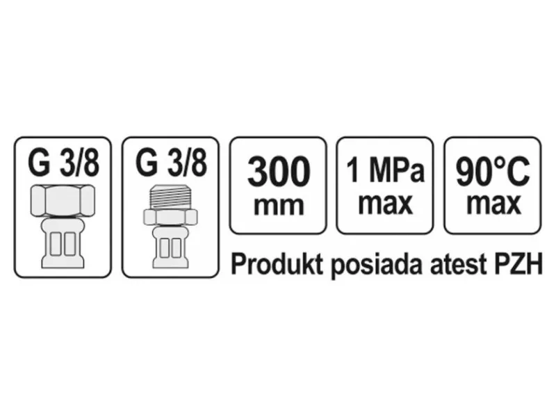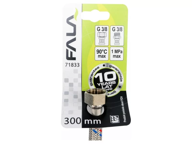 Flexible stainless steel braided connection hose. It is designed for hot and cold water. It is approved by the PZH for contact with drinking water.