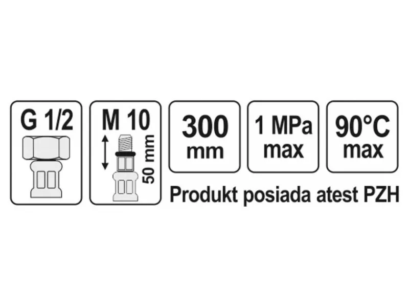 - Connection threads: Female 1/2" x male M10 (50 mm long)
