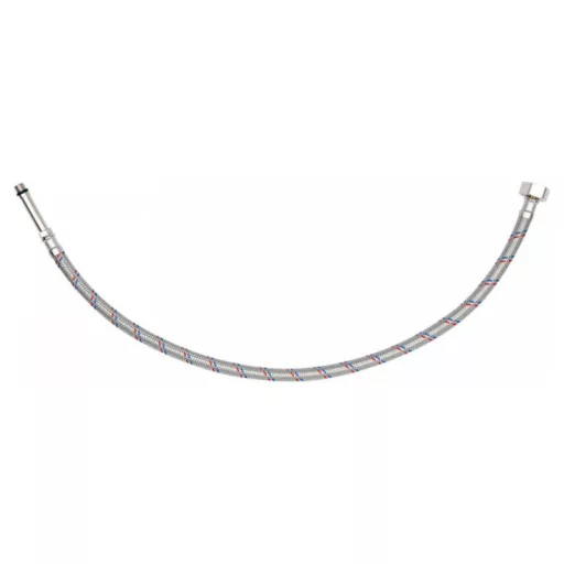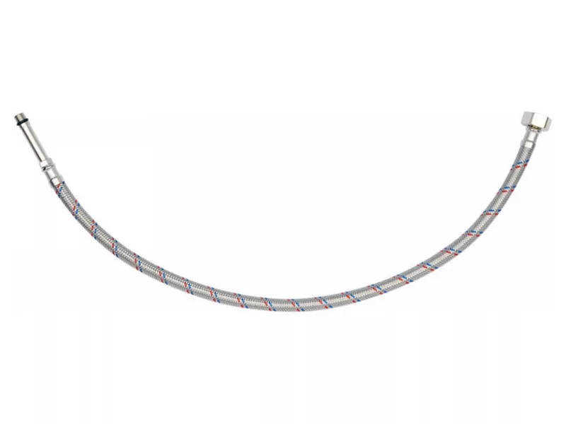 Flexible stainless steel braided faucet connection hose. It is designed for hot and cold water. It is certified by the National Institute of Hygiene for contact with potable water. It is designed from the connection of stubby basin and bathtub faucets with valves.