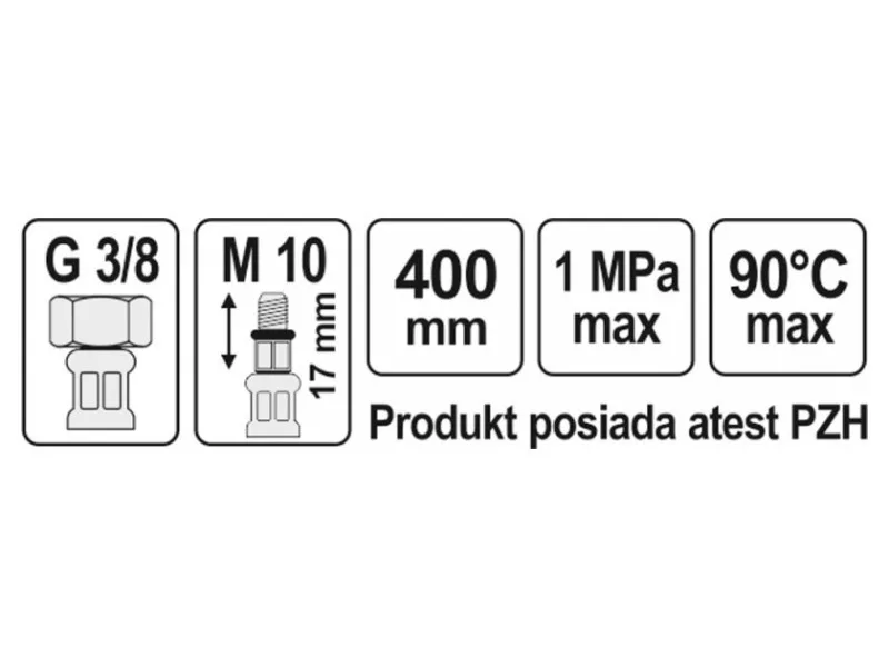 - connection thread: female 3/8" x male M10 (17 mm short)