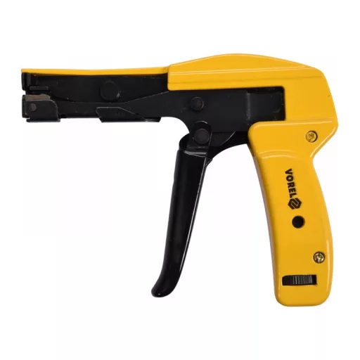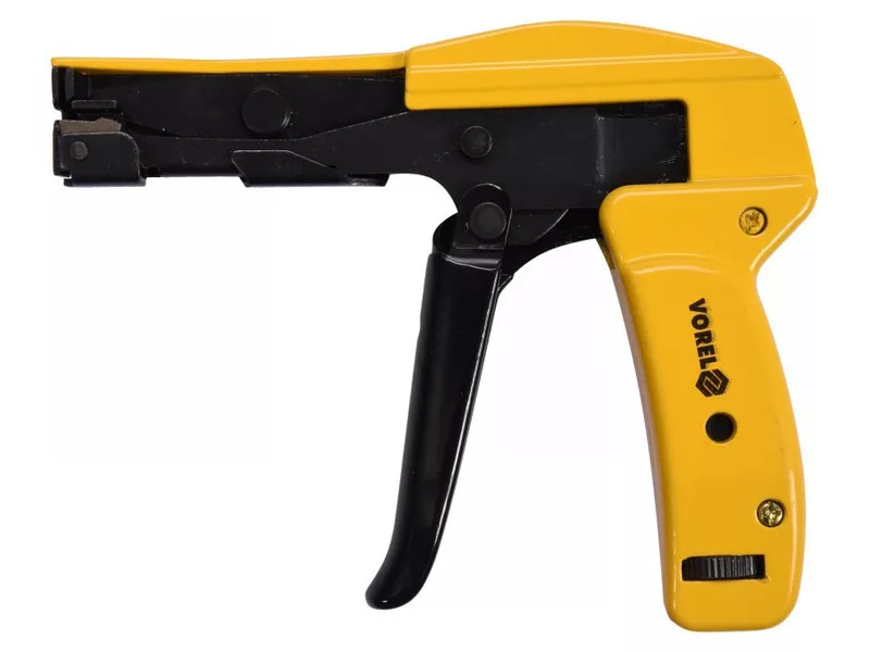 Gun for quick crimping of nylon cable ties with width and from 2.2 mm to 4.8 mm and thickness of 1.6 mm. After tightening the cable tie, it automatically cuts it off.
