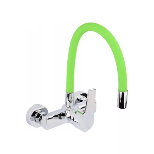 FALA Waschtischarmatur mit wandmontiertem grünem flexiblem Rohr + Zubehör