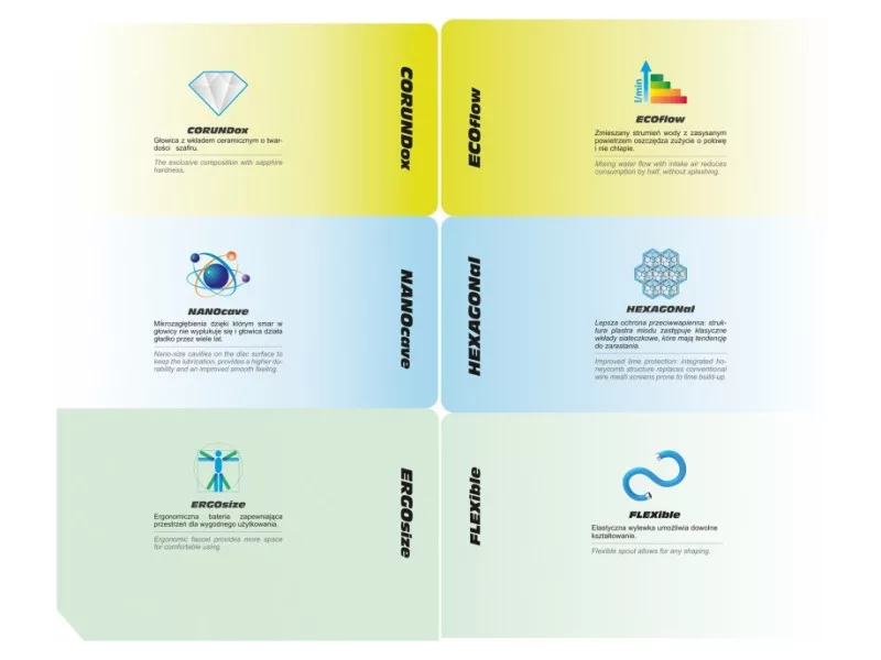 • head equipped with ceramic sinter of sapphire hardness with microscopic cavities on the surface, which protects grease from leaching and guarantees trouble-free operation of the faucet for many years