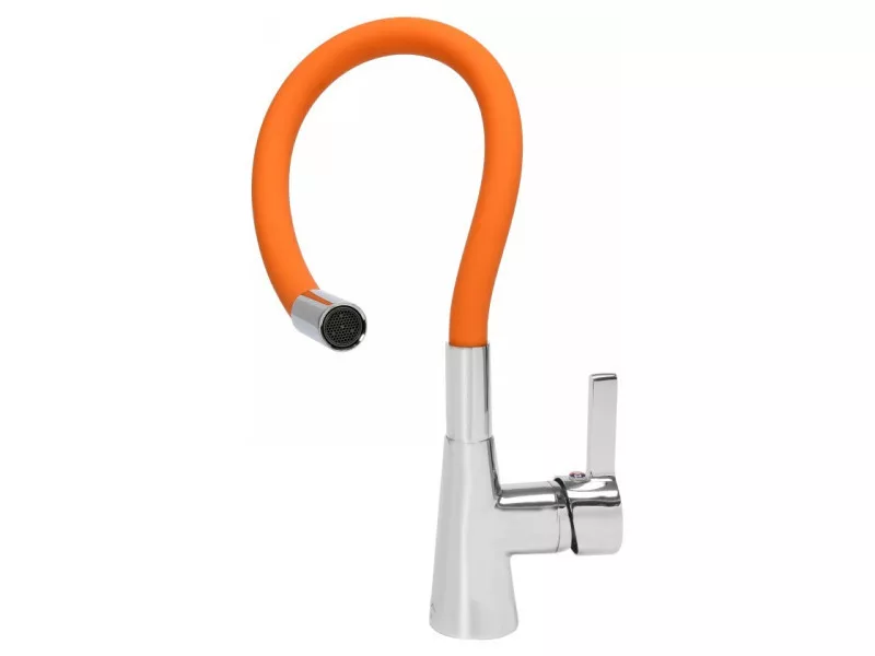 FALA Waschbeckenarmatur mit orangefarbenem flexiblem Rohr + Zubehör