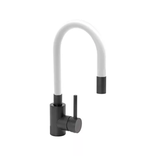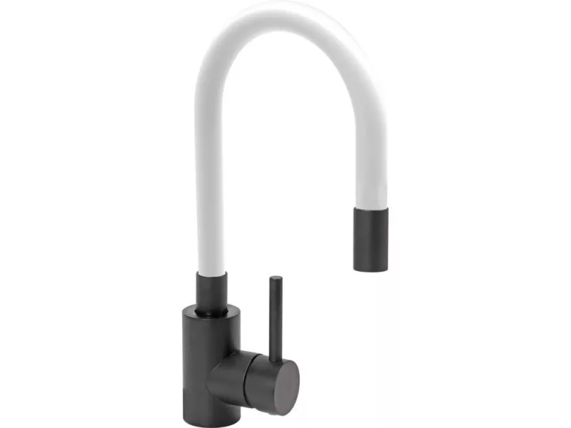 FALA Spültischarmatur schwarz mit weißem flexiblem Rohr