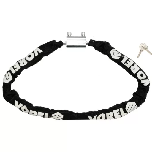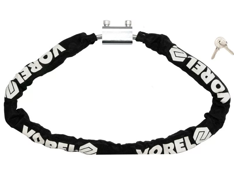 A chain bicycle fastener is the safest form of bicycle protection, outside U-lock locks, but with a much broader spectrum of applications than the so-called "horseshoe". In this type of fastening, the chain of hardened steel cells is a special padlock. The outer textile layer protects against scratches. The chain can also be used to attach other items, e.g. boats, sports equipment, motorcycles and gates. The length of 120cm is sufficient for most applications. The lock allows the chain to be removed on both sides. Designed to protect bicycles, prams, boats, etc.