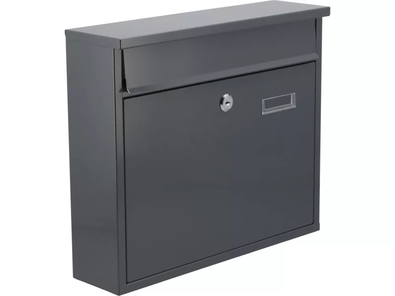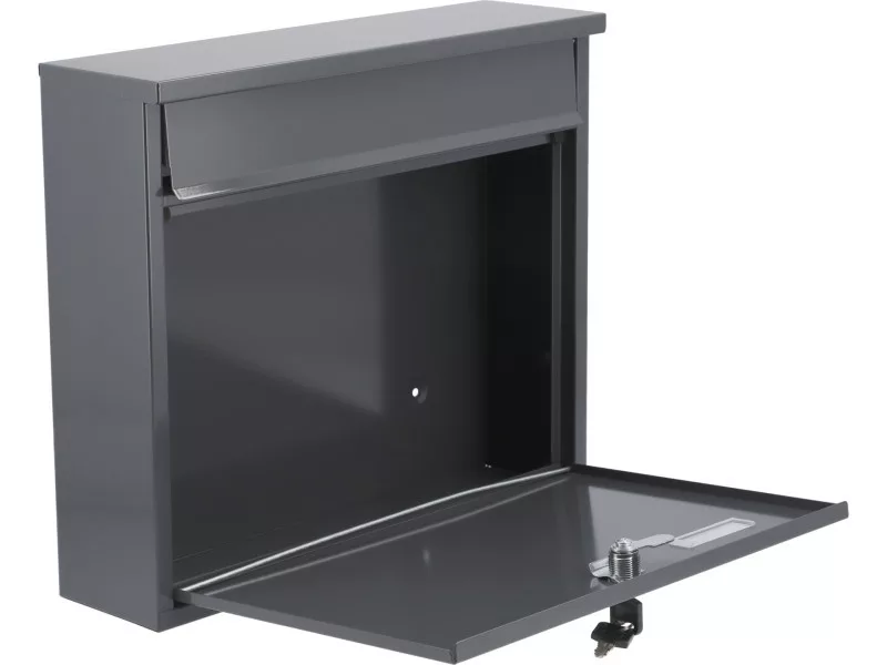 List box 310x360x100mm. Made of 0.6mm thick steel sheet, galvanized in gray. The inbox has a backward hole with a protective lid. The front door is closed to the lock. The set includes 2 keys. The back page has mounting holes. Net weight 2.11kg