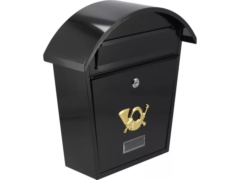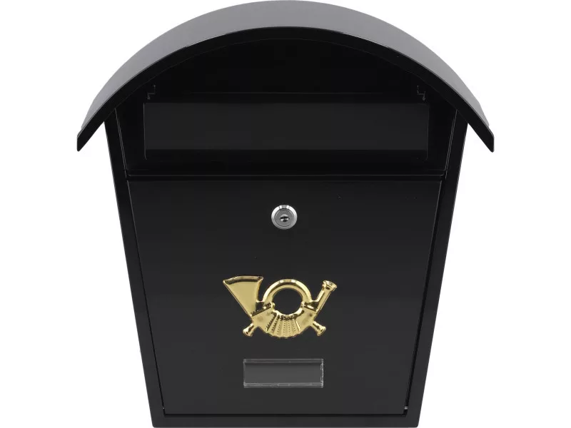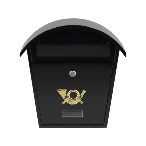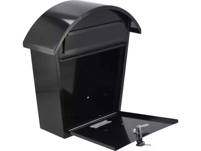 List box 380x320x105mm. Made of 0.6mm thick steel sheet, galvanized in black. The inbox has a backward hole with a protective lid. The front page has a panel made of plastic from the possibility of placing an identification plaque with an address or surname. The front door is closed to the lock. The set includes 2 keys. The back page has mounting holes. Net weight 2.4kg 2 keys