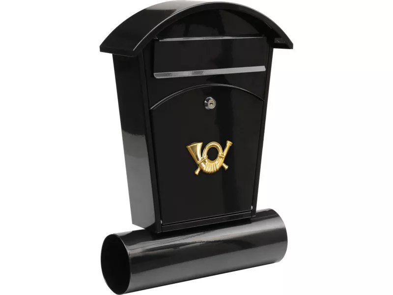 List box 480x280x80mm. Made of 0.6mm thick steel sheet, galvanized in black. The inbox has a backward hole with a protective lid and a storage space for newspapers, front doors are closed to the lock. The set includes 2 keys. The back page has mounting holes. Net weight 2.48kg