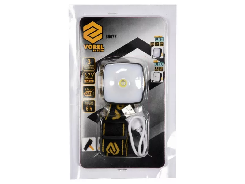 A powerful head flashlight with two types of light sources. It will work well for construction and maintenance work, as well as jogging, hiking.