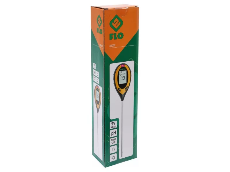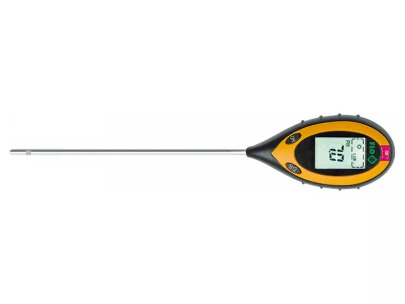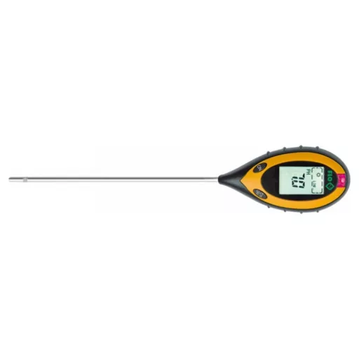 The garden meter measures four values: - soil moisture, - soil pH reagent, - soil temperature - lighting intensity. Meter, so -called The soil acid meter is equipped with a 20 cm long probe and a clear LCD display for easy and reading. If the probe is not stuck into the ground, the ambient temperature will be shown. The device has an automatic switching off function, which affects the life of the battery.