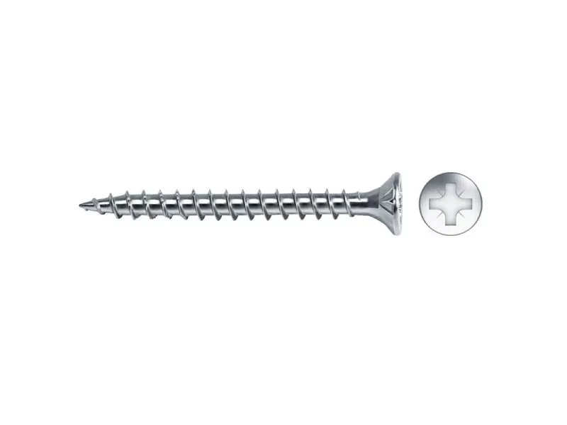 Der CELO VELOX ist eine Holzspanplattenschraube mit durchgehendem Gewinde, versenktem Kopf und PZ-Antrieb. Das patentierte Spitzengewinde gewährleistet ein spaltfreies Eindrehen. Die Wachsbeschichtung erleichtert das Eindrehen weiter.