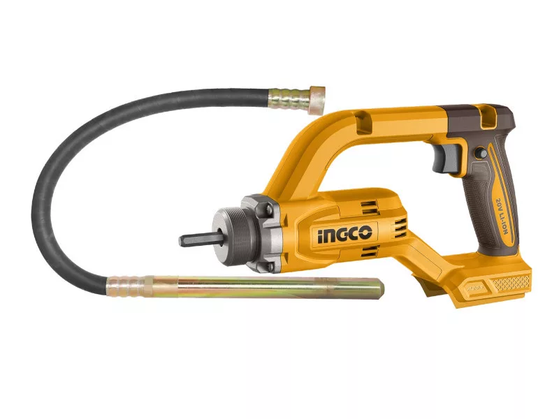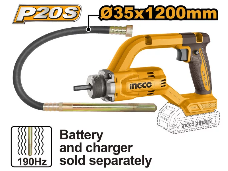Der Bürstenmotor kann bis zu 2500 U/min erreichen, um die Festigkeit des Betons zu erhöhen. Kompaktes und ergonomisches Design. Mit nur 5,2 kg Gewicht inklusive Akku reduziert es die Ermüdung des Bedieners (Akku nicht im Lieferumfang enthalten). 1200 mm lang mit einem 35 mm Schlauch.