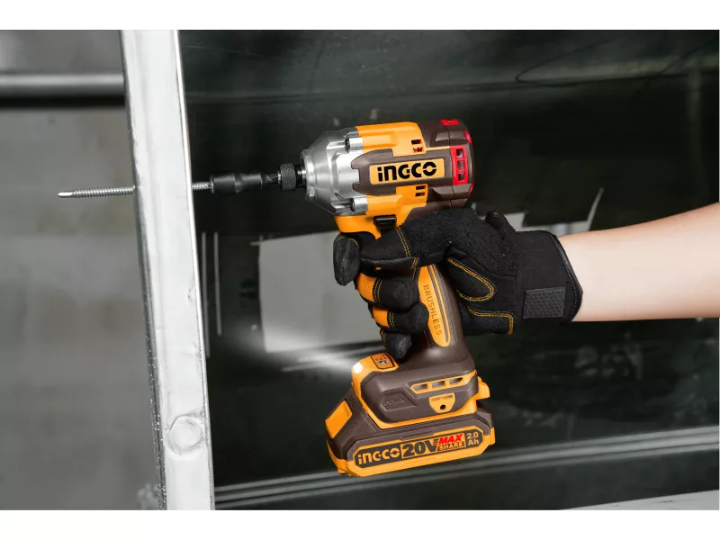 INGCO Akku-Schlagschrauber 1/4" 285 Nm bürstenlos 20 V (2 x 2,0 Ah Akku + Ladegerät)