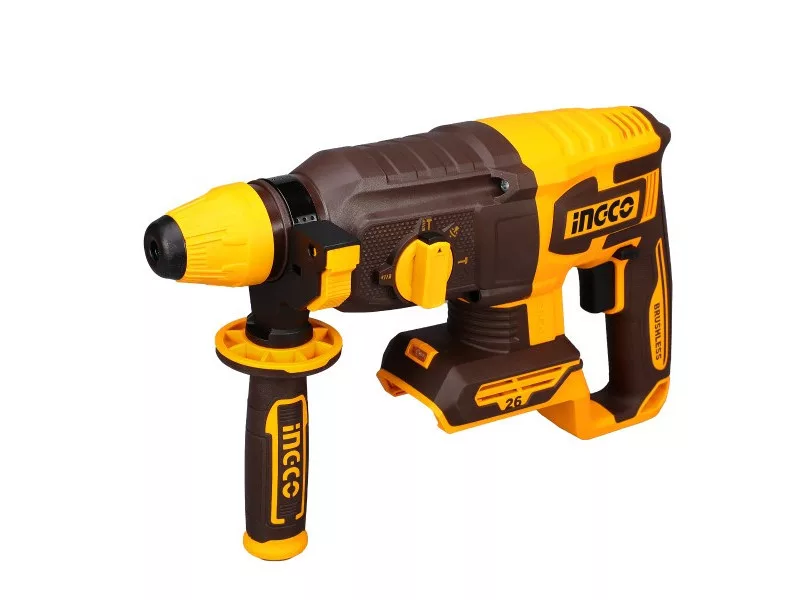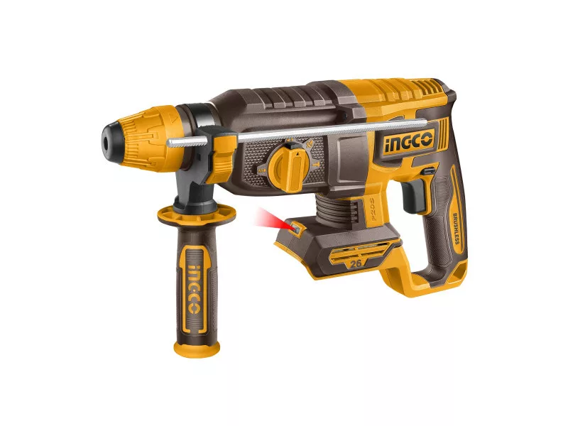 Az INGCO 20V-os akkus kombikalapács erős és sokoldalú szerszám beton, acél és fa fúrásához, valamint vésési feladatokhoz. A szénkefe nélküli motor nagy hatékonyságot, hosszabb élettartamot és stabil teljesítményt biztosít intenzív használat mellett is.